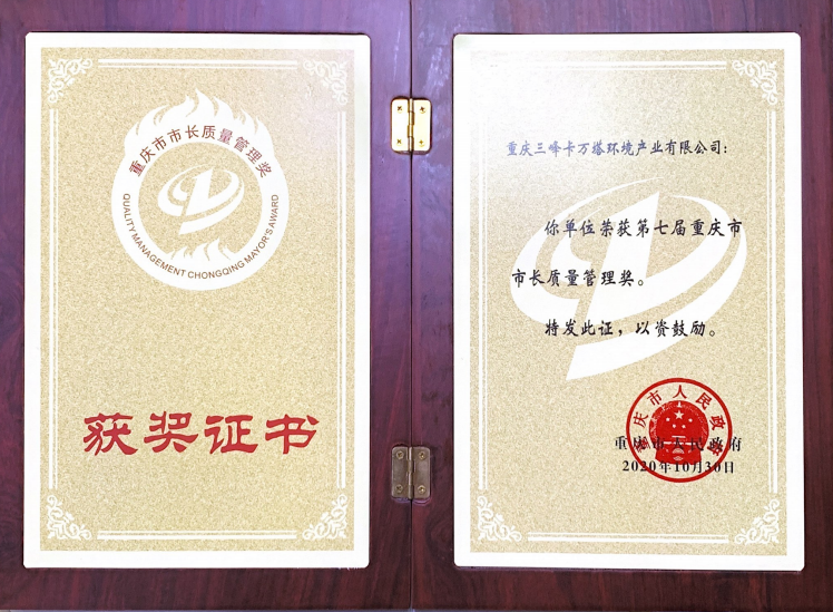 三峰卡萬塔榮獲第七屆重慶市市長質(zhì)量管理獎